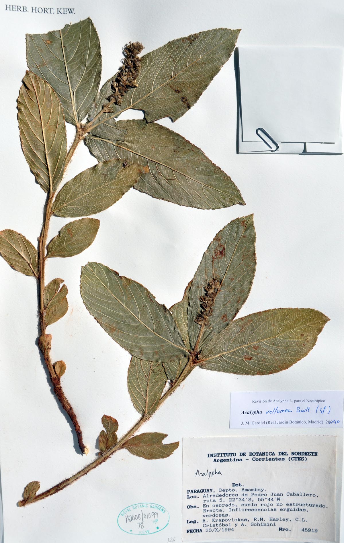 | Current identification: | Acalypha velamea Baill. | ||