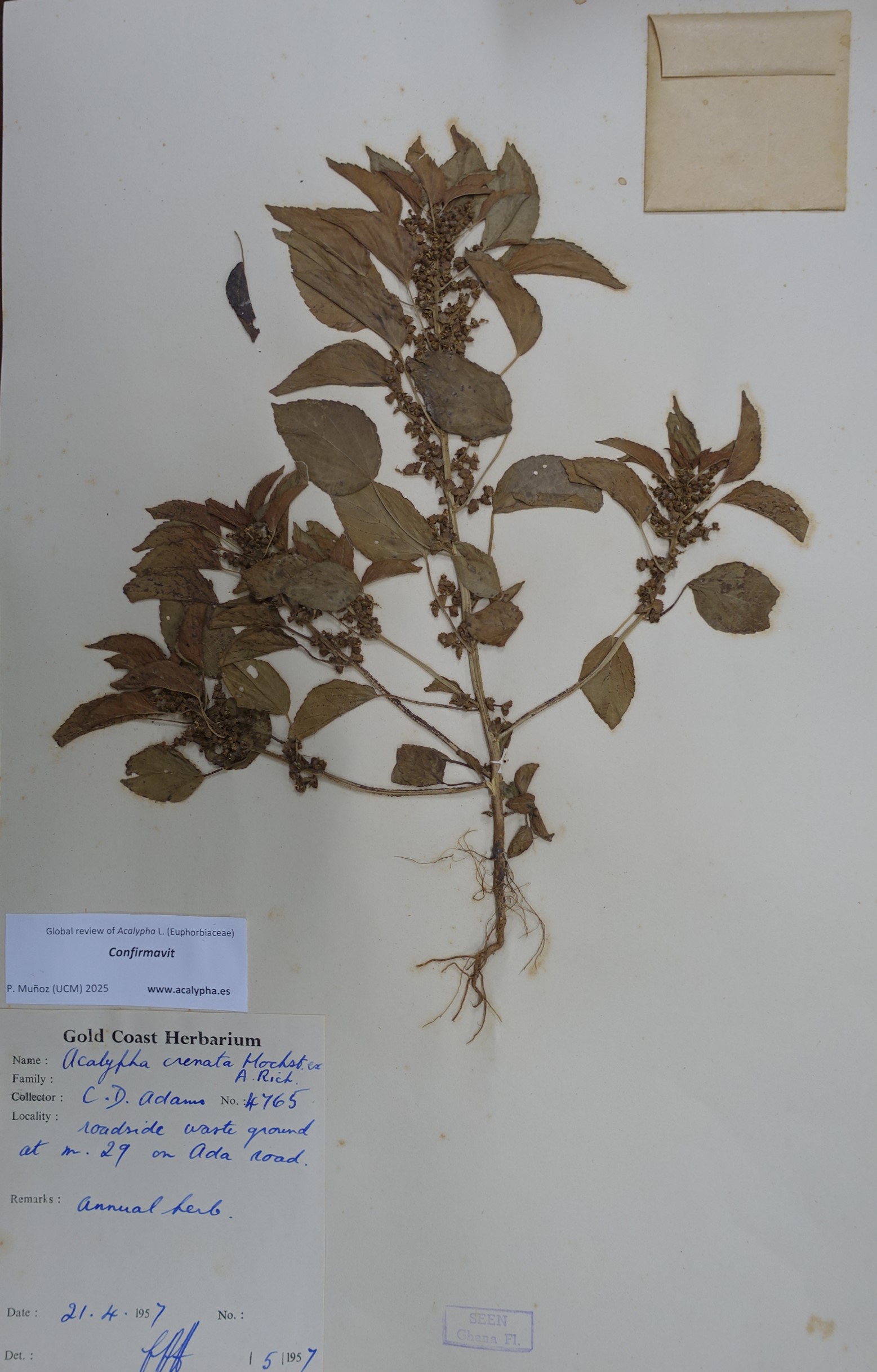 | Current identification: | Acalypha crenata Hochst. ex A.Rich. | ||