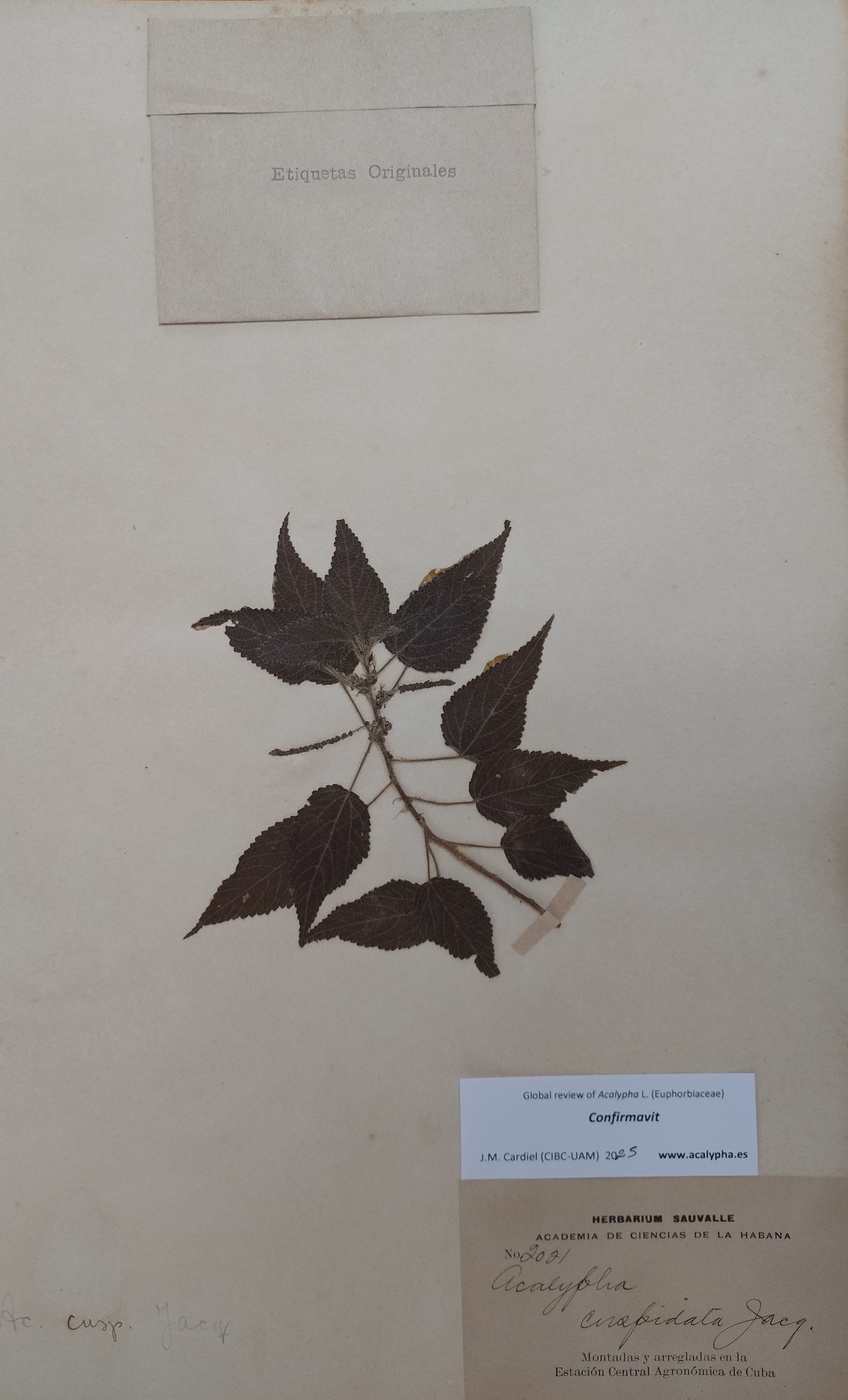 | Current identification: | Acalypha cuspidata Jacq. | ||