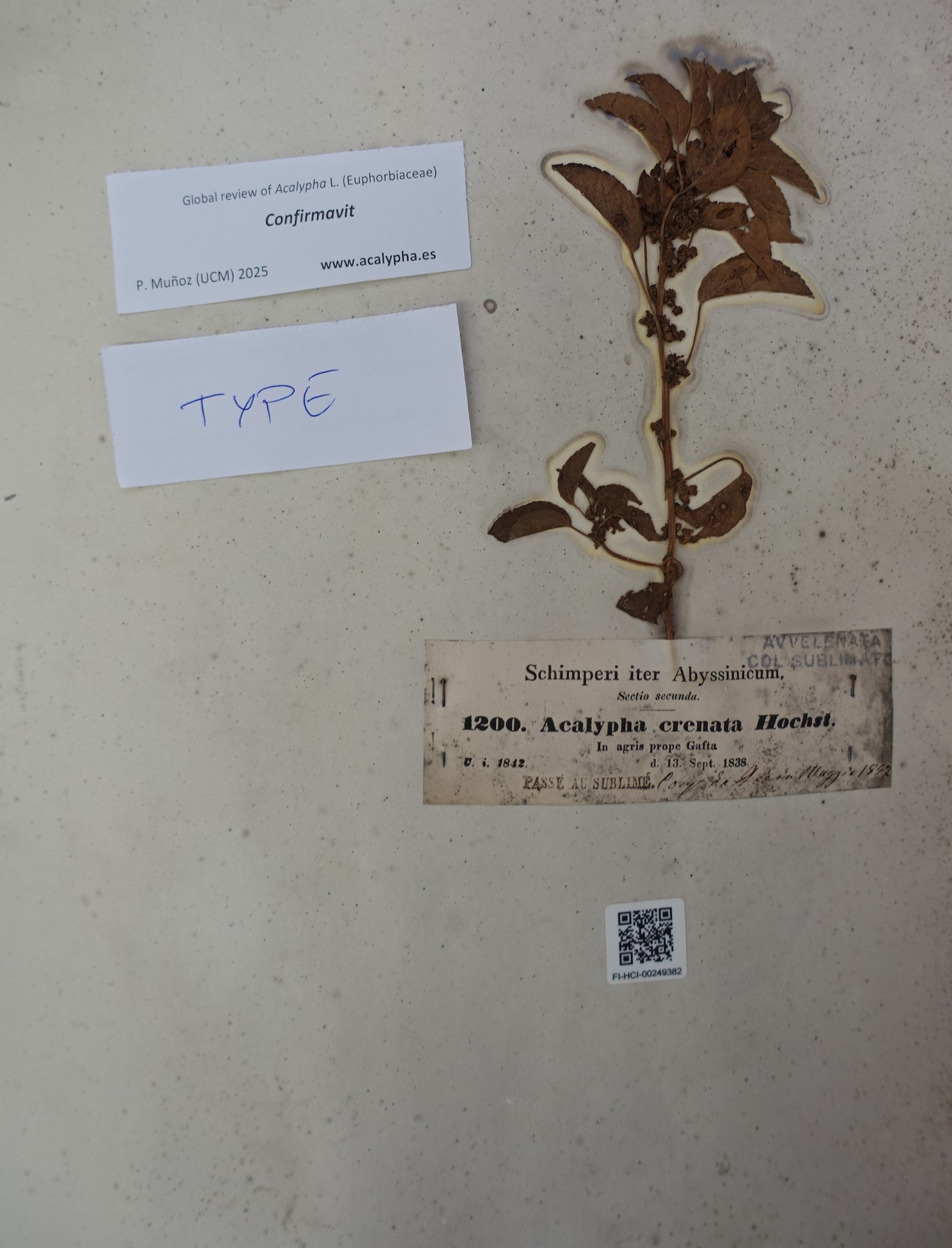 | Previous identification: | Acalypha crenata Hochst. | ||